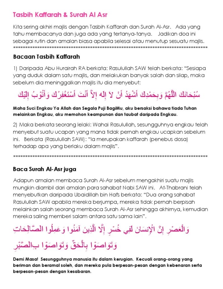 Tasbih Kifarah Dan Surah Al Asr - Penutup